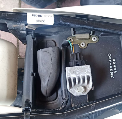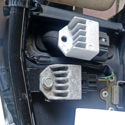 Ape50での活動 · 2025/10/18 レギュレーター交換です 白エイプ君にはバッテリーがありませんので、たぶん、このレギュレーターの役割は重要と思いました。外見は劣化して見えましたが、接点と配線はどうやら問題なしです。予防保全策として、調達した新品に交換します。接点回復剤も使い、30分ほどで交換できました。試運転はまったく異状なし!社外品なので、当分は旧レギュレーターも持って走ります。なんと!後方のウインカランプのねじが外れてぶら下がっていたので、ありあわせのナットで締め付けます。 tagPlaceholderカテゴリ: